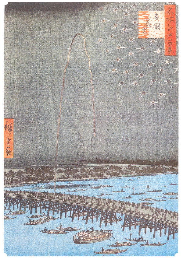 CATALOGUE 121. Fireworks by the Ryōgokubashi Bridge, by Andō Hiroshige (Uspensky 2005:213).