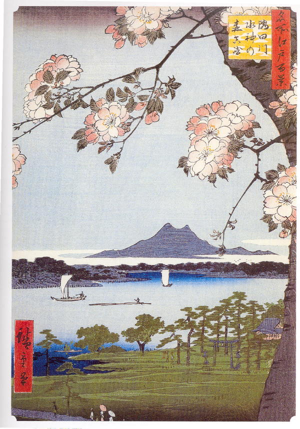 CATALOGUE 49. Massaki and the Suijin-no-Mori Shrine on the Sumidagawa, by Andō Hiroshige (Uspensky 2005:87).
