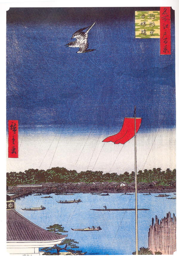 CATALOGUE 52. Komakatado Temple and Azumabashi Bridge, by Andō Hiroshige (Uspensky 2005:141).