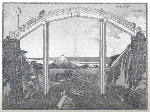 CATALOGUE 56. View of Fuji through Piers of a High-Arched Bridge, by Katsushika Hokusai (Forrer 1991).