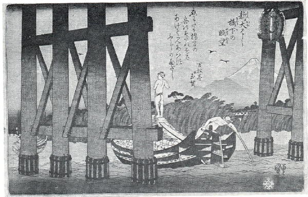 CATALOGUE 61. View from under Shin-Ohashi Bridge, from 36 Views of Mt. Fuji from the Eastern Capital, by Kuniyoshi (Kikuchi 1968).