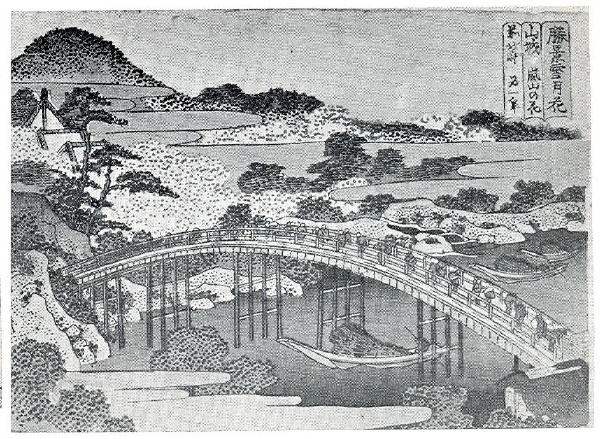 CATALOGUE 81. Cherry Blossoms at Arashiyama in Yamashiro Province from Beautiful Scenes of Snow, Moon, and Flower, by Hokusai (Kikuchi 1968).