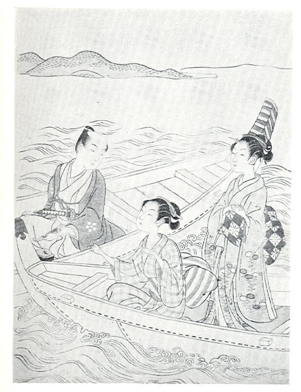 CATALOGUE 82. Man and Two Women Boating, by Harunobu (Kikuchi 1968).